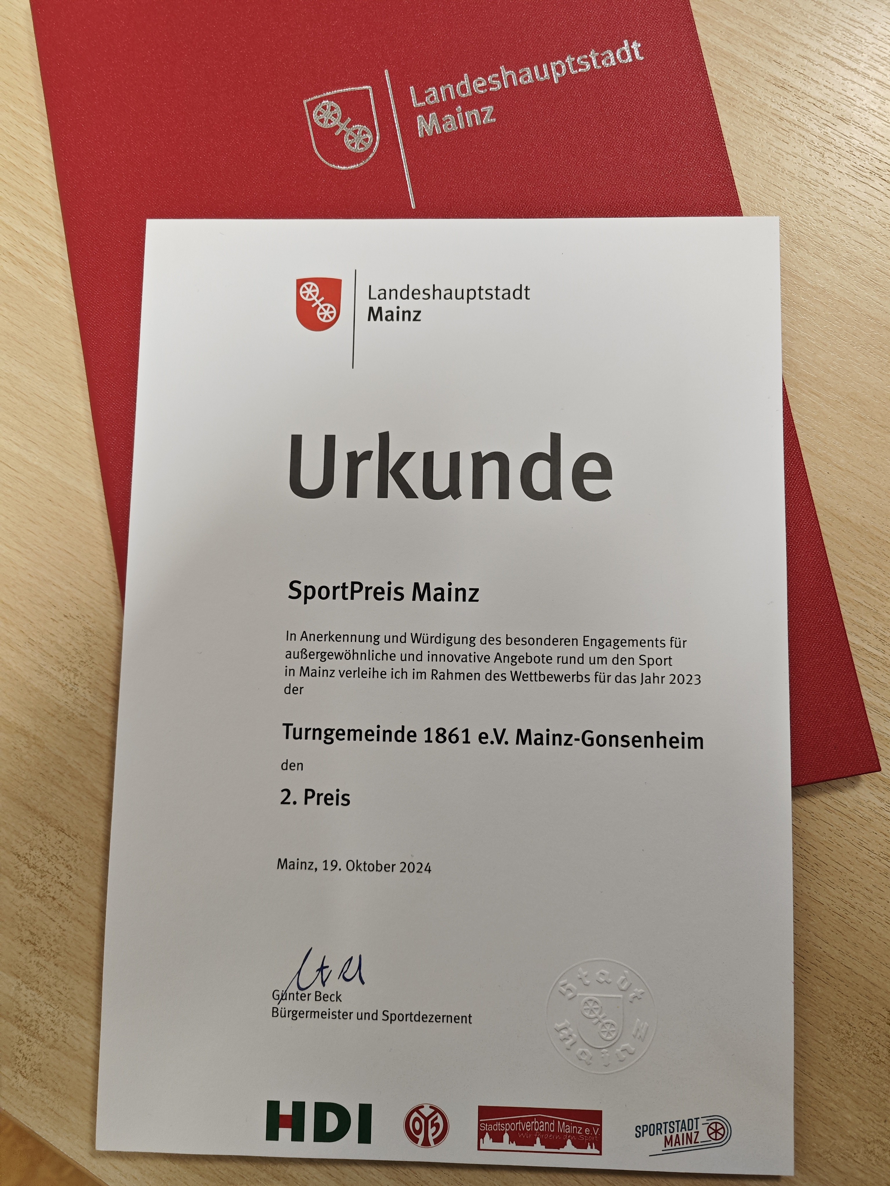 SportPreis der Landeshauptstadt Mainz – 2. Preis für unsere TGM Gonsenheim