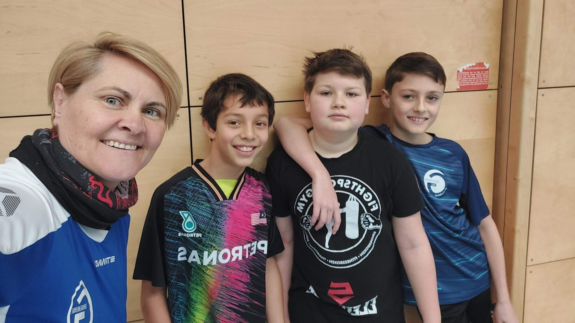 Unsere Spieler schlugen sich wacker und gaben keinen Ballwechsel verloren. Noah ging völlig unbedarft ran, denn es war für ihn überhaupt sein allererstes Spiel in dieser Sportart. Er schlug sich hervorragend, kämpfte bärenstark, doch es half alles nichts, der Gegner (späterer Sieger des Turniers) war schlicht weg zu stark. Oskar und Raphael erging es leider ähnlich, alle verloren gleich ihr erstes Spiel. Etwas geknickt, wollten sie es in den nächsten Spielen besser machen. Dies taten sie auch. Oskar hätte sein letztes Spiel fast gedreht. Er ließ seinen Gegner laufen, kämpfte beherzt, aber das Glück war nicht auf seiner Seite. In der Verlängerung musste er doch nachgeben. Oskar und Raphael waren sich einig, das nächste Mal wollen sie lieber im Doppel antreten.