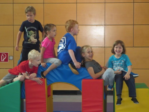 Nach einem Aufwärmspiel und Dehnung der Muskelgruppen wurden alle in verschiedene Riegen eingeteilt und los ging es mit den Stationen des Deutschen Fitness- und Motoriktests. Dabei mussten die Kids unter anderem Balancefähigkeit auf verschieden breiten Balken, Schnelligkeit beim Sprint, Koordinationsfähigkeit beim Hüpfen und Ausdauer beim Rundenlauf beweisen. Besonders beliebt war die Liegestützstation. In 40 Sekunden mussten so viele Liegestützen wie möglich absolviert werden und das immer zu zweit gegeneinander. Da war die Motivation schneller und besser zu sein natürlich nochmal größer! Die acht ehrenamtlichen TGM-ÜbungsleiterInnen bereiteten nach zwei anstrengenden Stunden noch ein Abschlussspiel vor und nach der Ergebnisauswertung konnte endlich die Urkundenübergabe und Siegerehrung stattfinden.