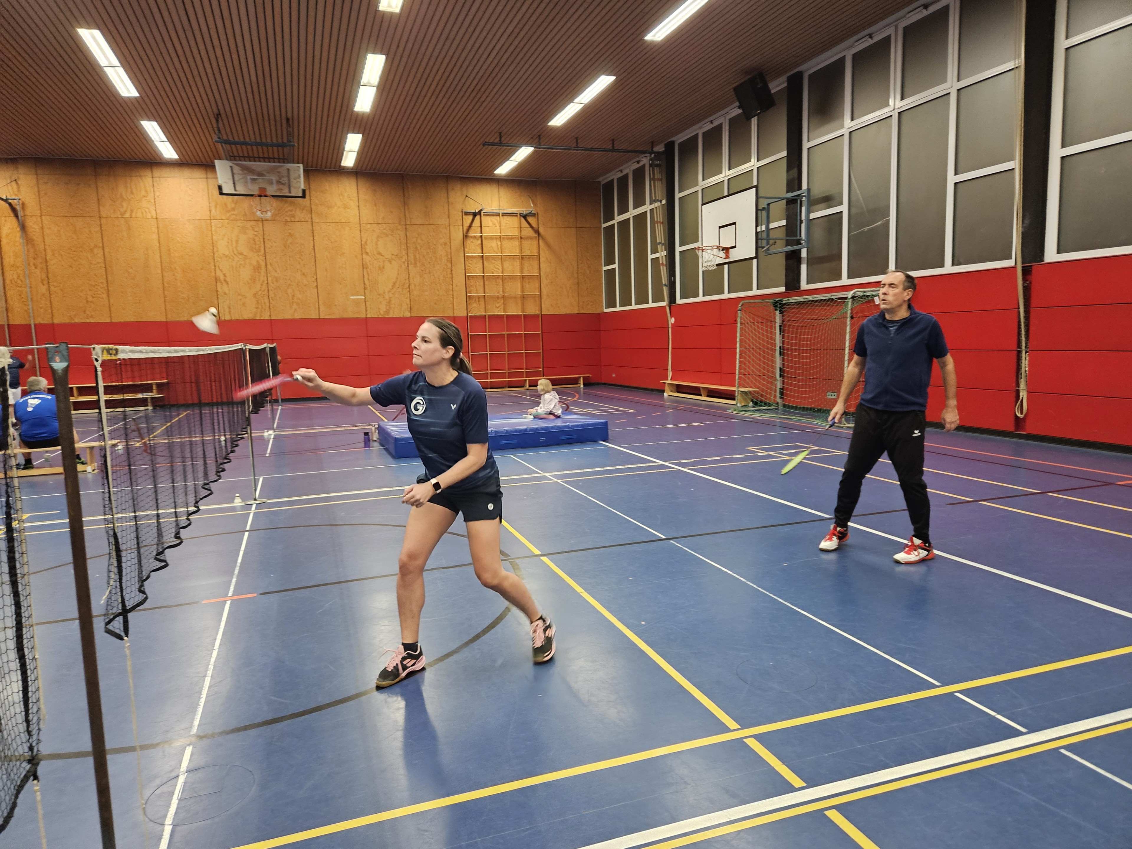 Da Leonard erkältungsbedingt aussetzen musste, starteten im ersten Herren-Doppel Holger und Marc und lieferten gekonnt zwei klare Sätze ab, die uns den ersten Punkt des Tages bescherten. Im zweiten Herren-Doppel, diesmal besetzt durch Björn und Jan F., lief es ebenfalls gut und auch hier konnten die beiden das Doppel klar für sich entscheiden. Manu und Dany machten es im Damen-Doppel jedoch spannend und lieferten sich nach dem ersten (klar) gewonnenen Satz eine wahre Zitterpartie im zweiten Satz, den sie letztendlich mit knappen 23:21 gewannen!