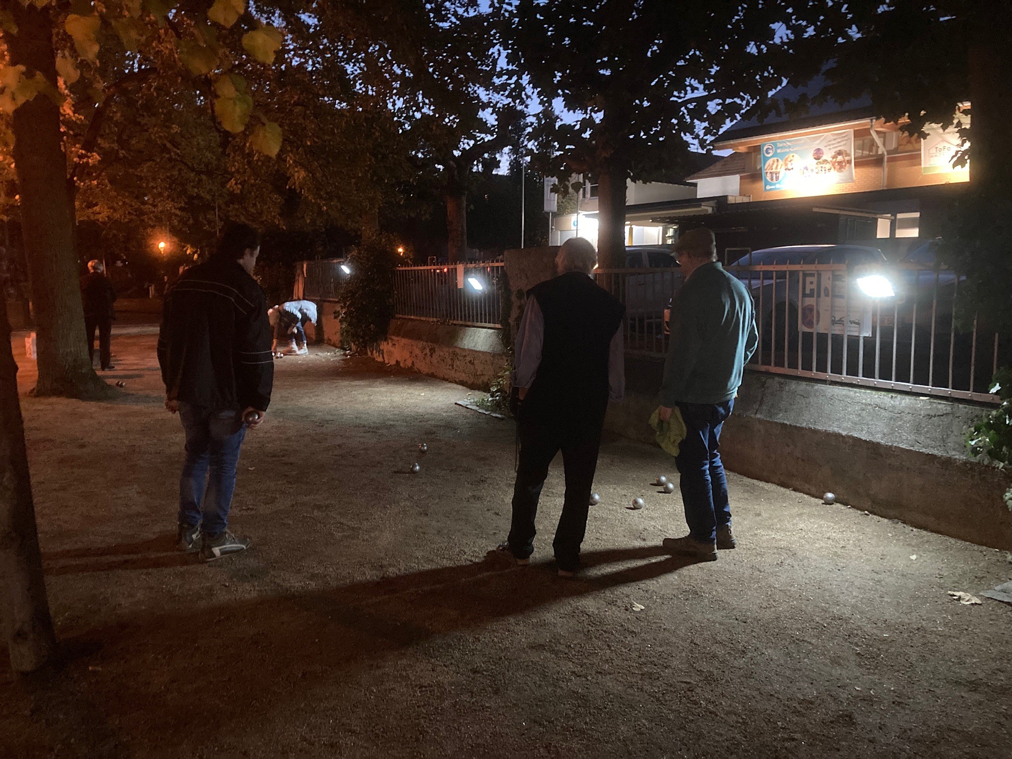 „Oh, ich spiele in einem kleinen Boule-Verein in unserem Dorf. Wir haben immerhin 25 Mitglieder und treffen uns jede Woche zum Spielen und danach gehen wir noch was essen und trinken. Unsere Boule-Bahn ist ein Grünstreifen neben der Straße. Nächste Woche treffen wir uns gemeinsam auf dem Weihnachtsmarkt.“