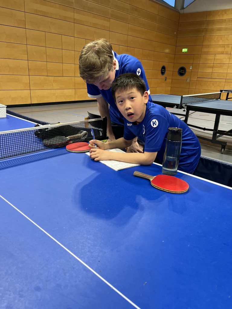 Die Tischtennisabteilung besteht derzeit 122 aus Mitgliedern. Hiervon zählen 92 zu den Erwachsenen und 30 zu der Jugend – die zwei Jüngsten sind gerade mal neun Jahre alt. Exemplarisch hier ein Foto von dem 9-jährigen Wenhao bei seiner ersten Unterschrift auf dem Spielbericht (gecoacht von Matthias Perrey).