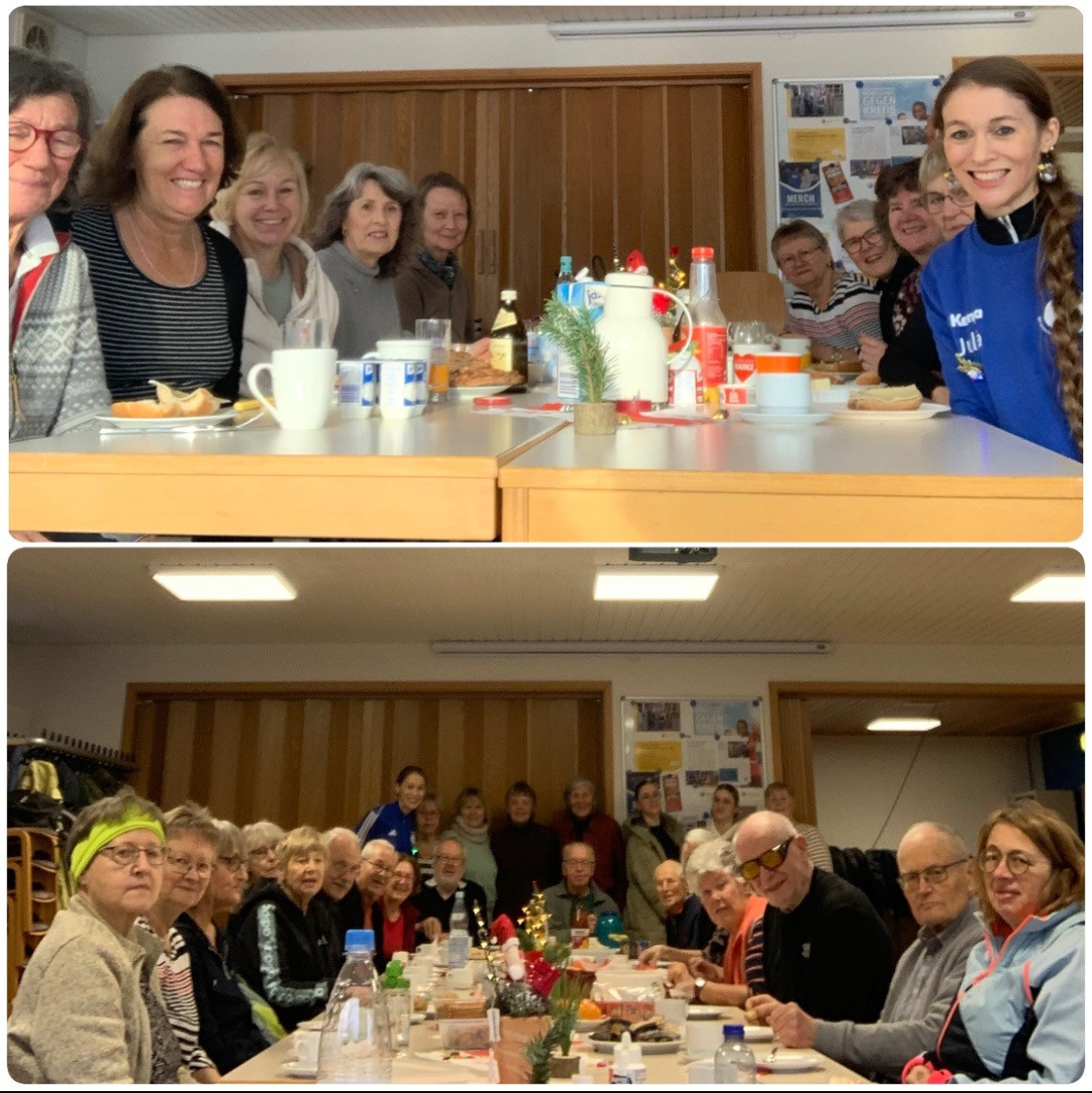 Die Frauenfitness-Gruppe feierte ihre Weihnachtsfeier am 18. Dezember 2025 ebenfalls im Gesellschaftsraum. Auch hier wurde vor dem gemütlichen Teil von 09:30-10:00 Uhr eine halbe Stunde gemeinsam trainiert. Beim Fitnesstanz zu „All I Want For Christmas Is You“ kam noch einmal richtig Bewegung in die Runde. Danach folgte ein gemeinsames Frühstück mit Zeit für Gespräche, Rückblicke auf das Trainingsjahr und ein entspanntes Beisammensein.