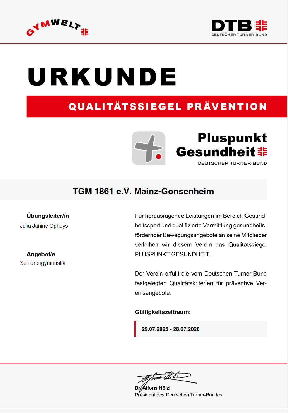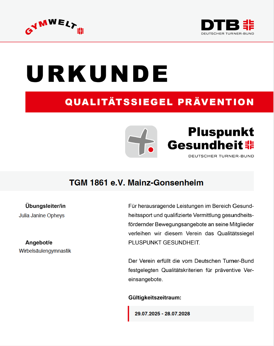 = Diese Sportangebote sind ausgezeichnet mit dem Qualitätssiegel “Pluspunkt Gesundheit” des Deutschen Turnerbundes (DTB).