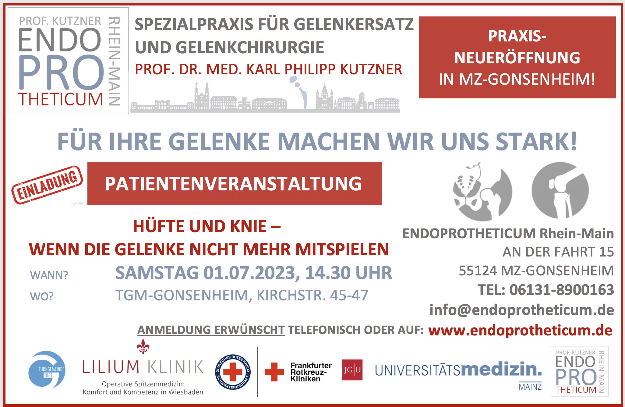 Anlass ist die Neueröffnung des ENDOPROTHETICUM Rhein-Main, einer orthopädischen Spezialpraxis für Gelenkersatz und Gelenkchirurgie, in Mainz-Gonsenheim.