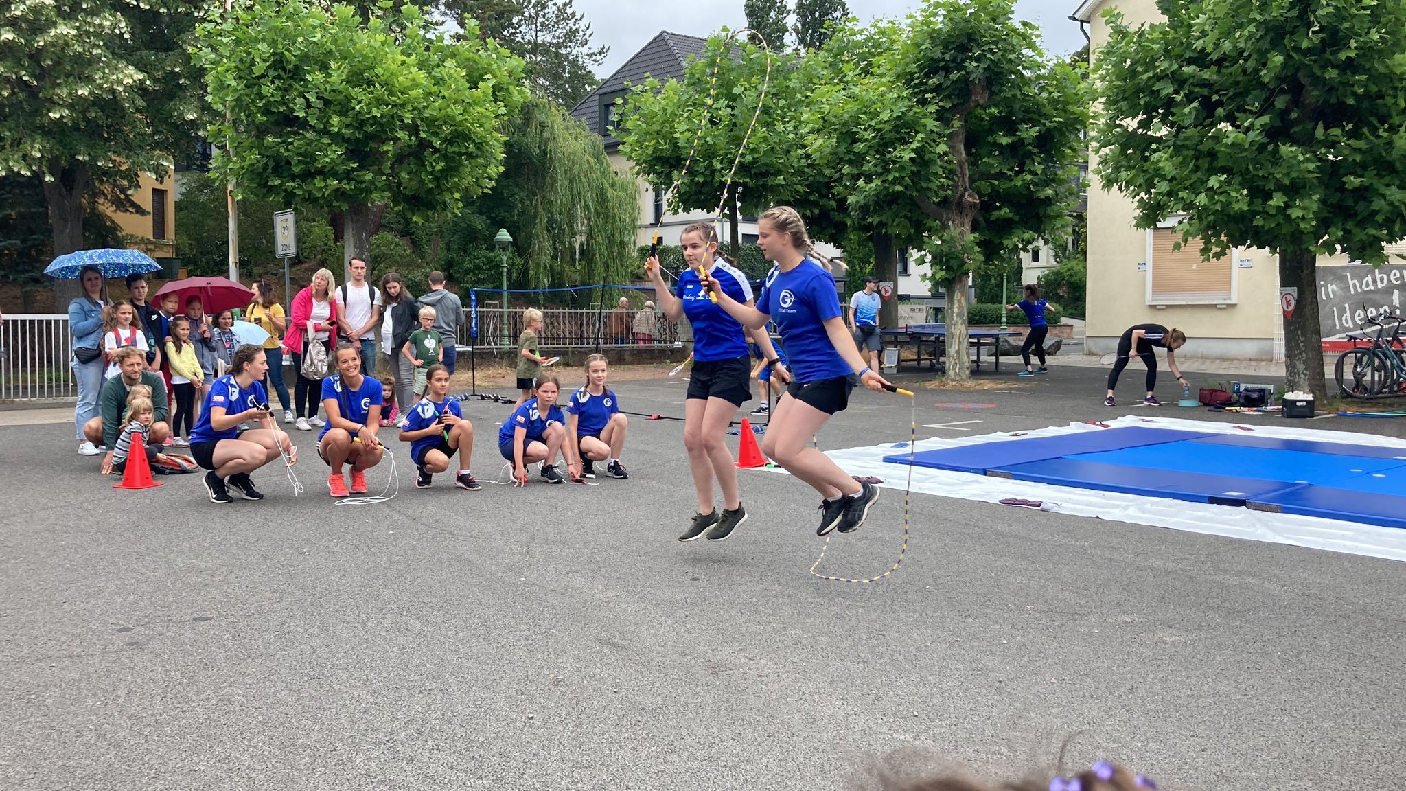 Mittwochs von 17:00 bis 18:00 Uhr treffen sich die Anfänger (“Jumpminions”) ab 6 Jahren mit ihren Trainerinnen Isabell und Martha Hanke in der Turnhalle der Maler-Becker-Schule und lernen die ersten Sprünge und Tricks. Direkt im Anschluss trainieren die Geübten von 18:00 bis 19:00 Uhr an gleicher Stelle mit ihrer Trainerin Janina Schmitz. Sie nennen sich „Jumpicorns”.