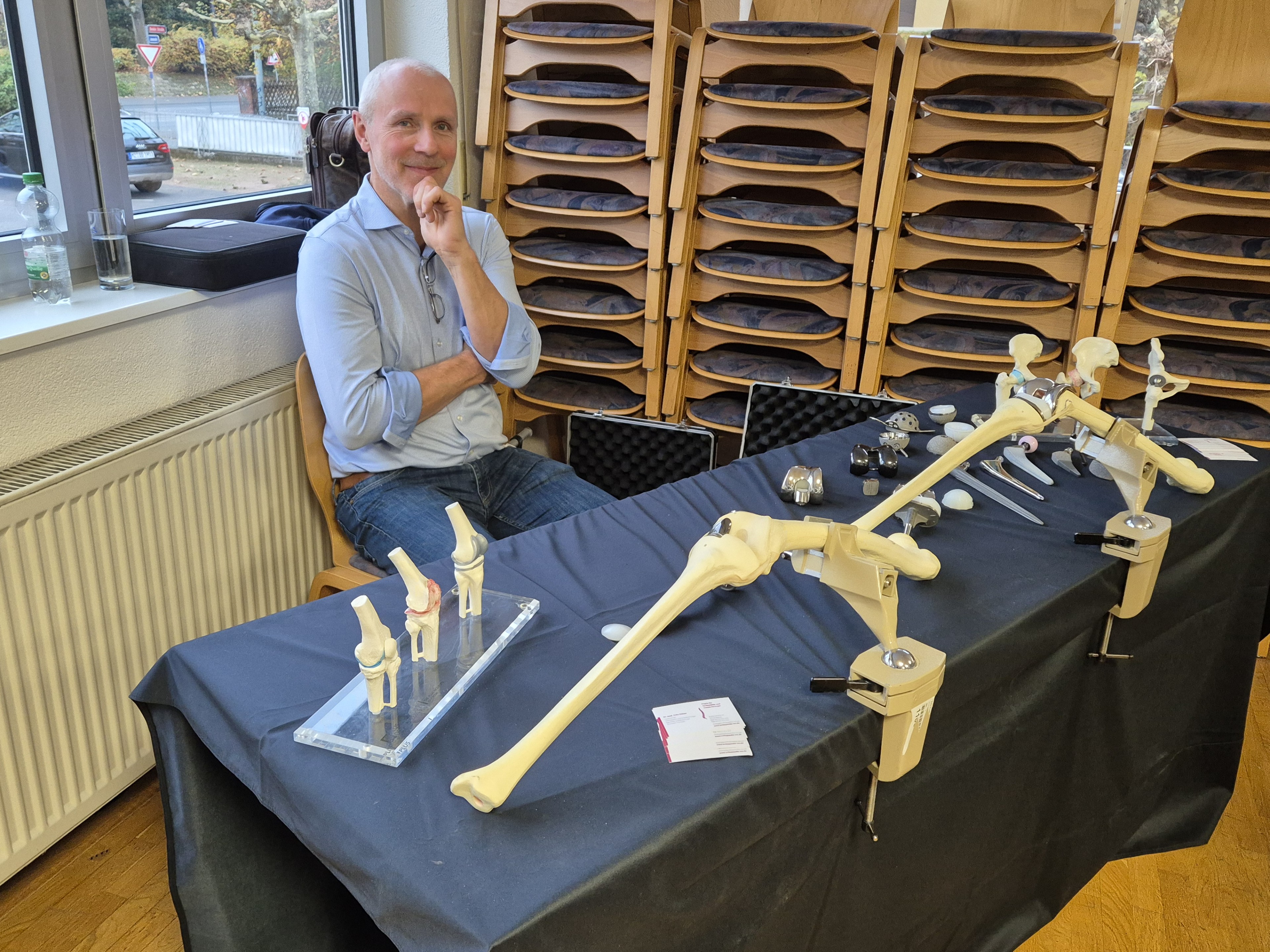 Unterstützt wurde Dr. Eidner von Christoph Vogel. Herr Vogel stellte verschiedene Endoprothesen am Modell vor.