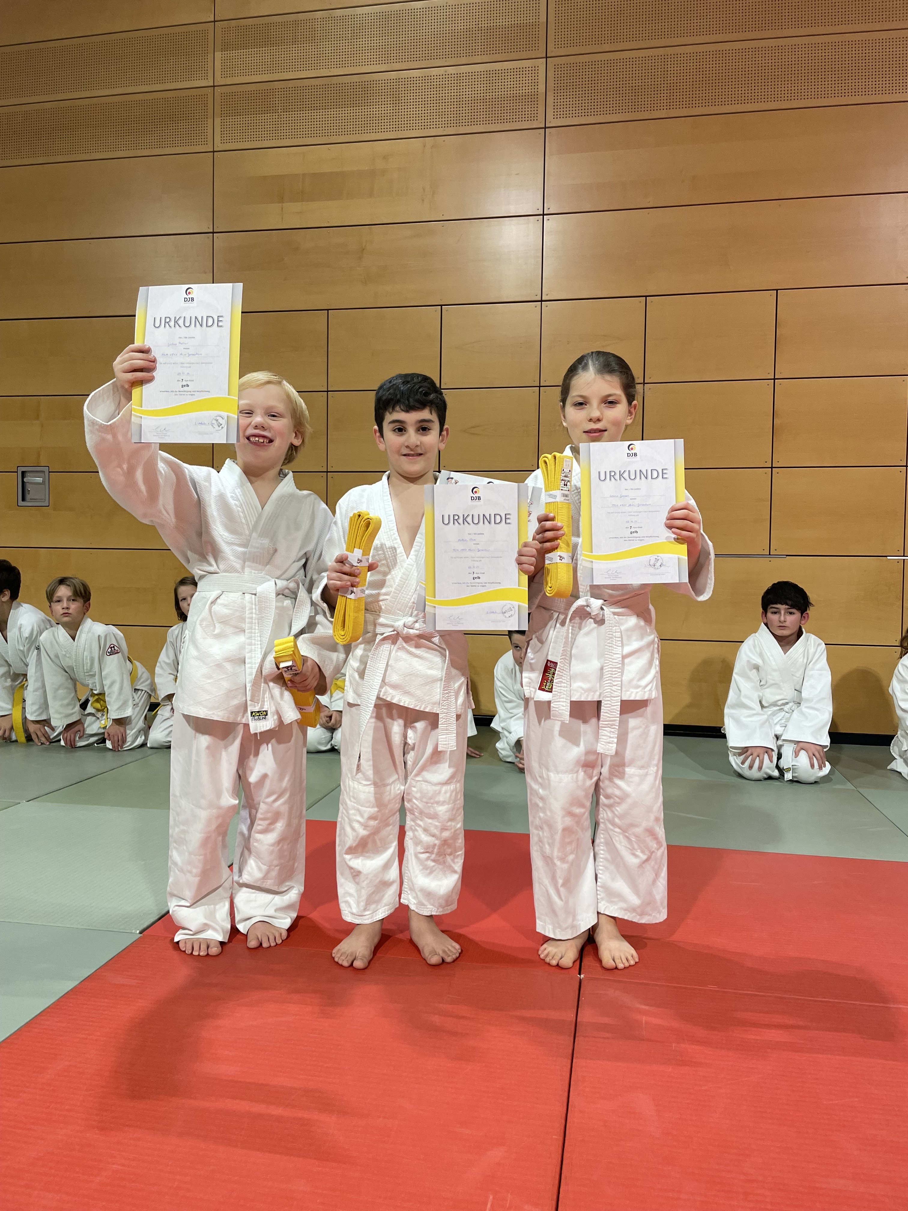 08. Januar 2025 | von Sonja WaleskaAm 09.12.2024 fand eine Kyu-Prüfung in der Kindergruppe statt. Kyu werden die Schülergrade im Judo genannt. Die drei Prüflinge Leonie, Mathias und Joshua haben dafür ihre Würfe und Haltegriffe gezeigt. Belohnt wurden sie mit dem gelben Gürtel. Herzlichen Glückwunsch!