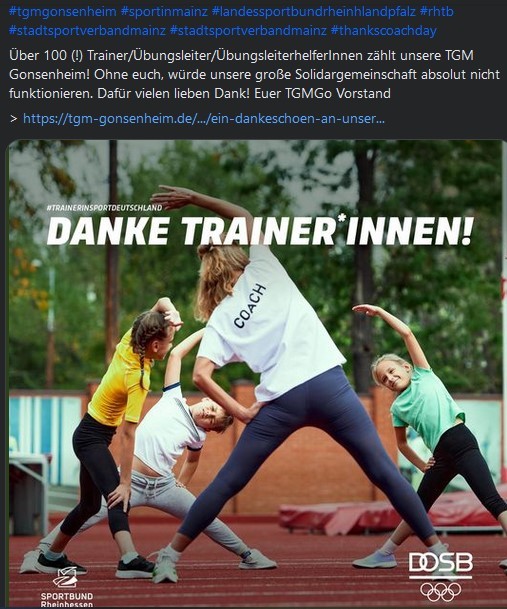 Über 100 (!) Trainer/Übungsleiter/ÜbungsleiterhelferInnen zählt unsere TGM Gonsenheim! Ohne euch, würde unsere große Solidargemeinschaft absolut nicht funktionieren. Dafür vielen lieben Dank!