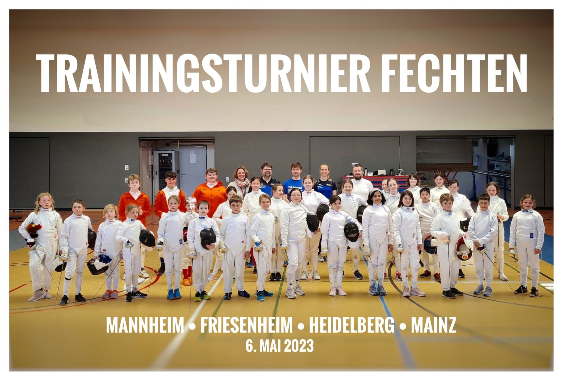23. Mai 2023 | von Bettina MatterAm 06. Mai 2023 fand erstmals ein Wettkampftraining unserer Degen-Jugend statt, das ein voller Erfolg war. Die Idee dabei war, unseren Nachwuchs an Wettkämpfe heranzuführen und das Fechten als Wettkampfsport zu einem positiven Erlebnis werden zu lassen. Es waren 31 Kinder aus Mainz, Heidelberg, Friesenheim und Mannheim in der Halle, plus sehr kooperative Betreuer aus den Vereinen, sowie viele toll mit anpackenden Eltern. Die Kinder hatten viel Spaß und es gab viele Gefechte auf hohem Niveau, bei denen die Kinder sich bemüht haben, die erlernten Grundtechniken und -taktiken anzuwenden. Nicht zuletzt aufgrund der sehr fairen Gefechte war die Stimmung in der Halle hervorragend. Danach sind einige mit zur U20 DM nach Rüsselsheim gefahren, wo sie fleißig Autogramme der Medaillen-GewinnerInnen gesammelt haben.